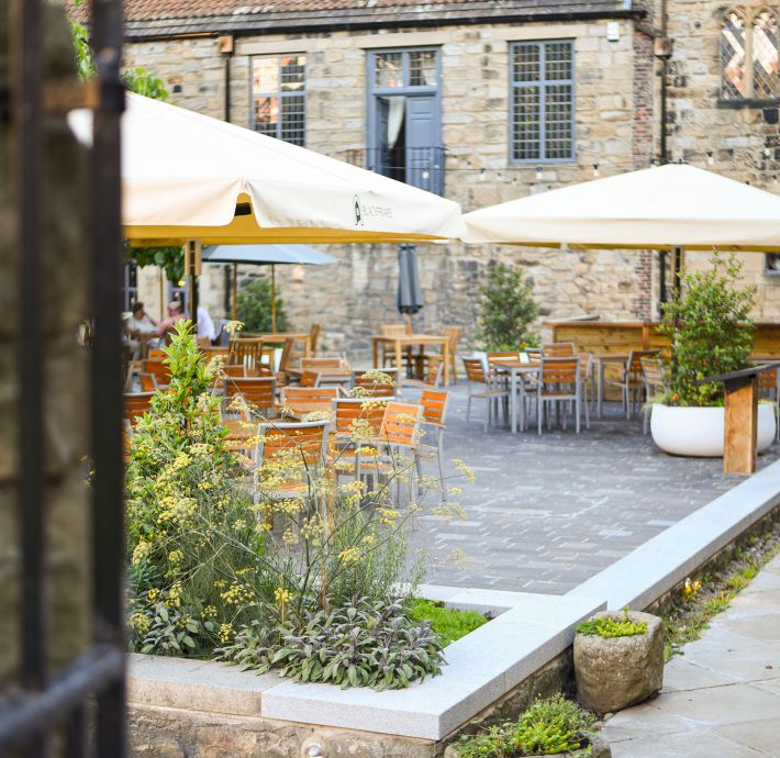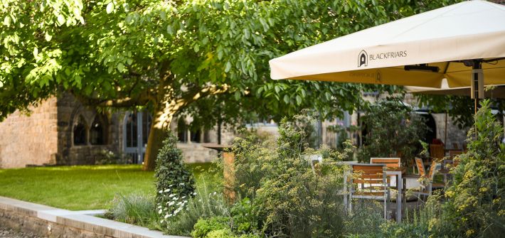 Southern Green was appointed by Andy Hook, owner of Blackfriars Restaurant, to create a new space that was a sensitive yet vibrant, fully accessible, inviting, and memorable destination. A large area of hardstanding was required to allow not only the restaurant, but community groups, performance artists, and markets, to utilise the space. The design focussed heavily on the rich heritage of the site (Grade I listed building and Scheduled Monument), resulting in the need for improved interpretation. Existing materials were salvaged and sensitively reused, with additional decorative lighting and planting used to enhance the retained black walnut.