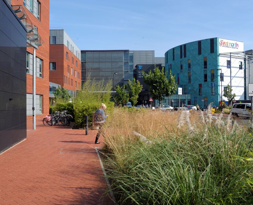 Works at the RVI included demolition of many of the old Victorian nightingale wards for replacement with new buildings including the new Children’s Hospital, Atrium and Culture Centre. Southern Green’s scope included landscape masterplanning, as well as detailed hard and soft landscape design for the external spaces and internal courtyards.