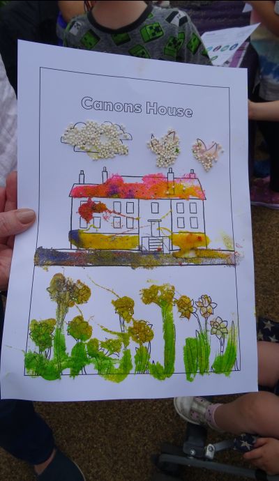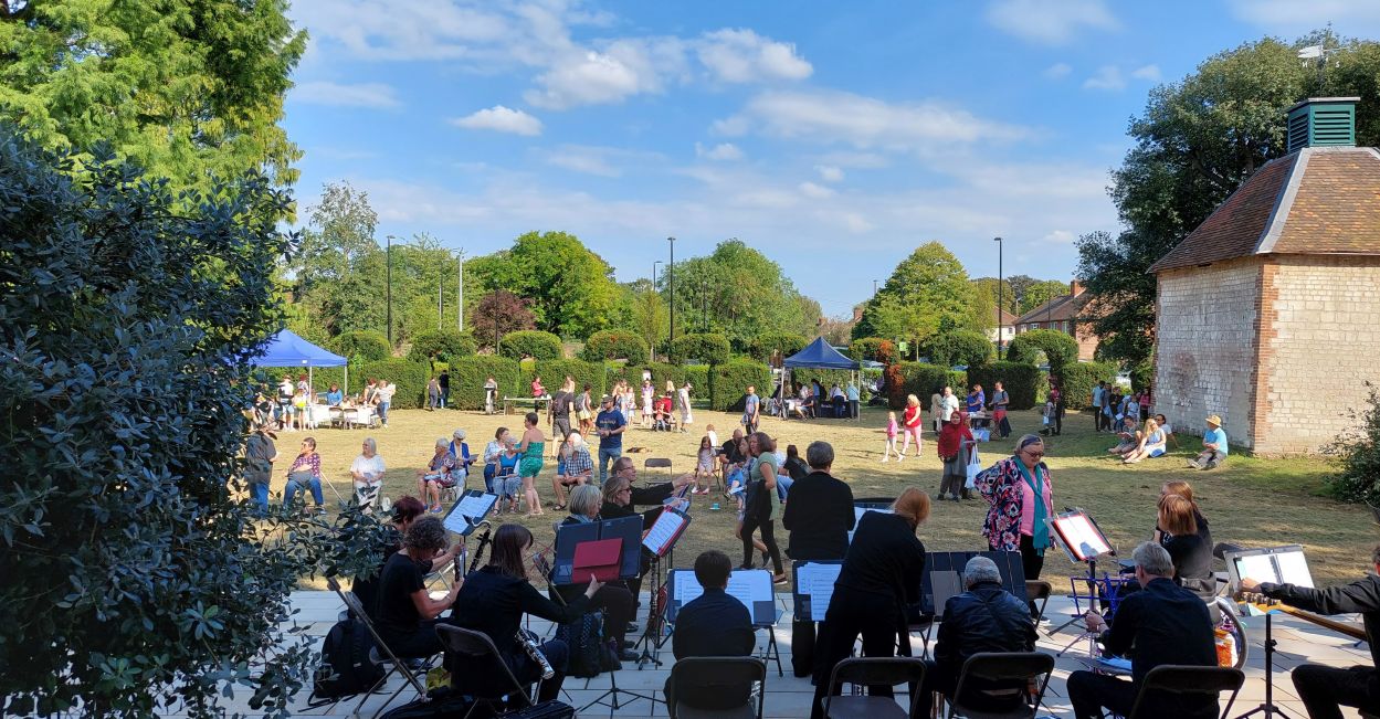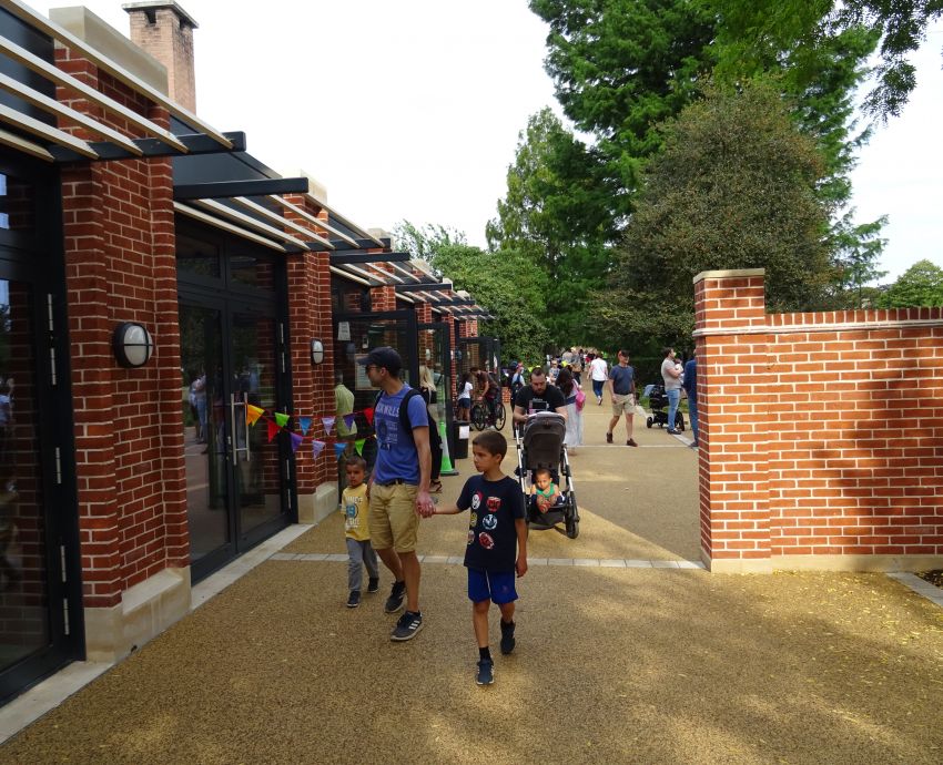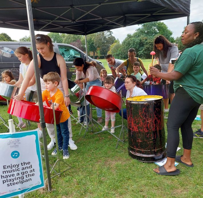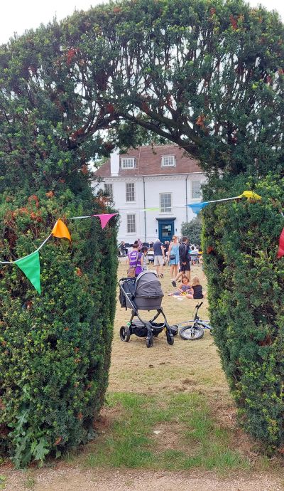 Hundreds of people attended this successful event: going wild in the unique and bespoke Studio Hardie play area co-designed with local children; marvelling at the produce of the community garden and using traditional Mitcham Lavender to create artworks. Visitors enjoyed drinks and cake from the café inspired by the community garden and sat on the lawn in front of the house listening to the concert band (band members including representatives of local Friends group) playing on the new terrace. There were opportunities to peek inside the restored dovecote, try steel drumming on the West Lawn, sit in the beautifully restored walled garden and walk around the grounds to take in the pond, obelisk and, for the more energetic, run around the restored athletics track.