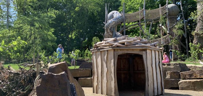 Our contribution focused on the development of the new Play Area and broader external enhancements. The Play Area, nestled in the woodland behind the Castle complex, was designed to be visually unobtrusive and blend seamlessly with the surroundings. It draws inspiration from the rich history of the Middleton family, and the mythical figures 'Wildman' and 'Wildwoman', that are woven into the fabric of Belsay. These figures, emblematic of the Middleton family, encapsulate nature's picturesque essence whilst retaining an air of mystery. The Wildman & Wildwoman theme is underpinned with other subsidiary themes like the Middleton family and traces of their presence, picturesque ideals, plant collecting and Greek influences. After developing concept proposals, we worked alongside Studio Hardie who developed designs and installed the play installation.