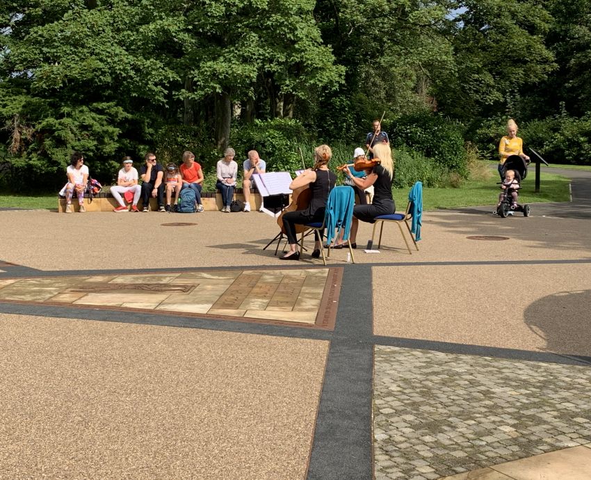 Works included the reinstatement of the Lost Garden, extensive planting restoration and the upgrading of the activity zone including a new water play area which has proved extremely successful over the last two summers. The new performance space also interprets the Woodhorn Mining Disaster of 1916 through a complex floor piece with carved stones and seats. The area proved to be a great setting for the musicians at the opening drawing good crowds.