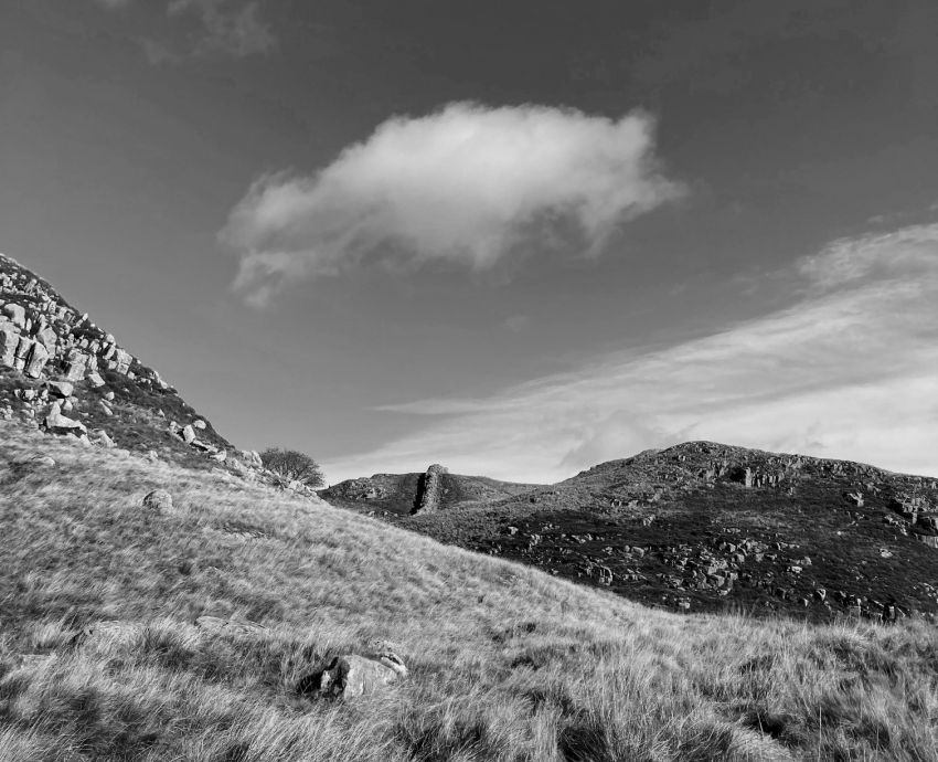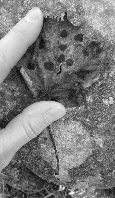 These photos from a @newcastleuni @landscape_newcastleapl MLA field visit in October 2022 show #sycamoregap peeping over #Hadrianswall and a leaf from the tree displaying Tarspot (Rhytisma acerinum) – a common fungus that affects sycamores but which happily does no lasting damage.