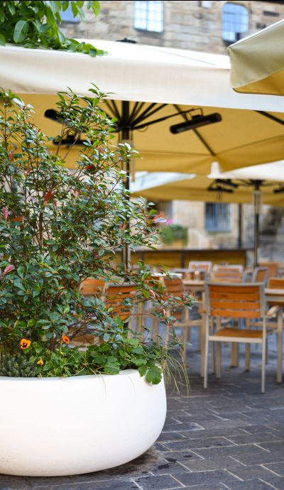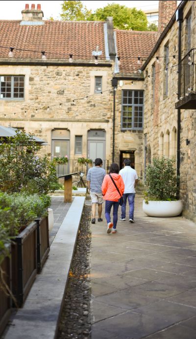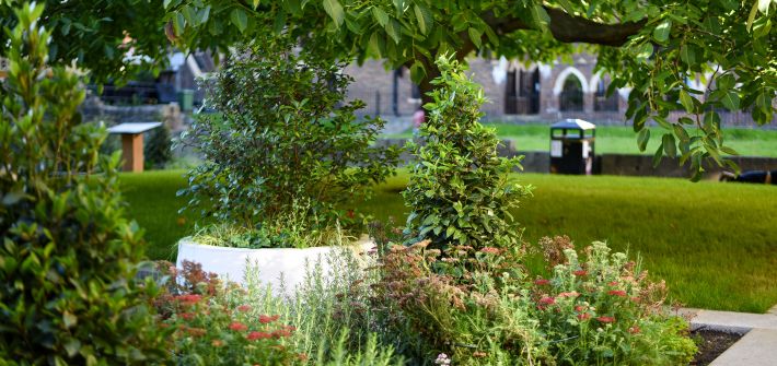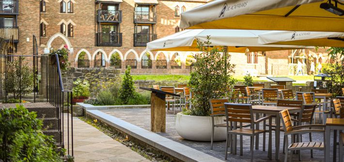 Southern Green was appointed by Andy Hook, owner of Blackfriars Restaurant, to create a new space that was a sensitive yet vibrant, fully accessible, inviting, and memorable destination. A large area of hardstanding was required to allow not only the restaurant, but community groups, performance artists, and markets, to utilise the space. The design focussed heavily on the rich heritage of the site (Grade I listed building and Scheduled Monument), resulting in the need for improved interpretation. Existing materials were salvaged and sensitively reused, with additional decorative lighting and planting used to enhance the retained black walnut.
