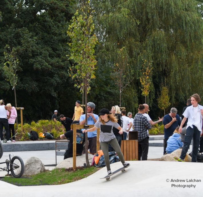 Facilities cater for all types of boards, bikes, scooters, skates and blades and were designed to maximise participation of all ages, genders and abilities. Each feature has been carefully positioned to encourage users to progress from one space to another as well as try new activities. Southern Green Ltd collaborated with Active Communities Experiences who specialise in Active Places and wheeled sports facilities.
