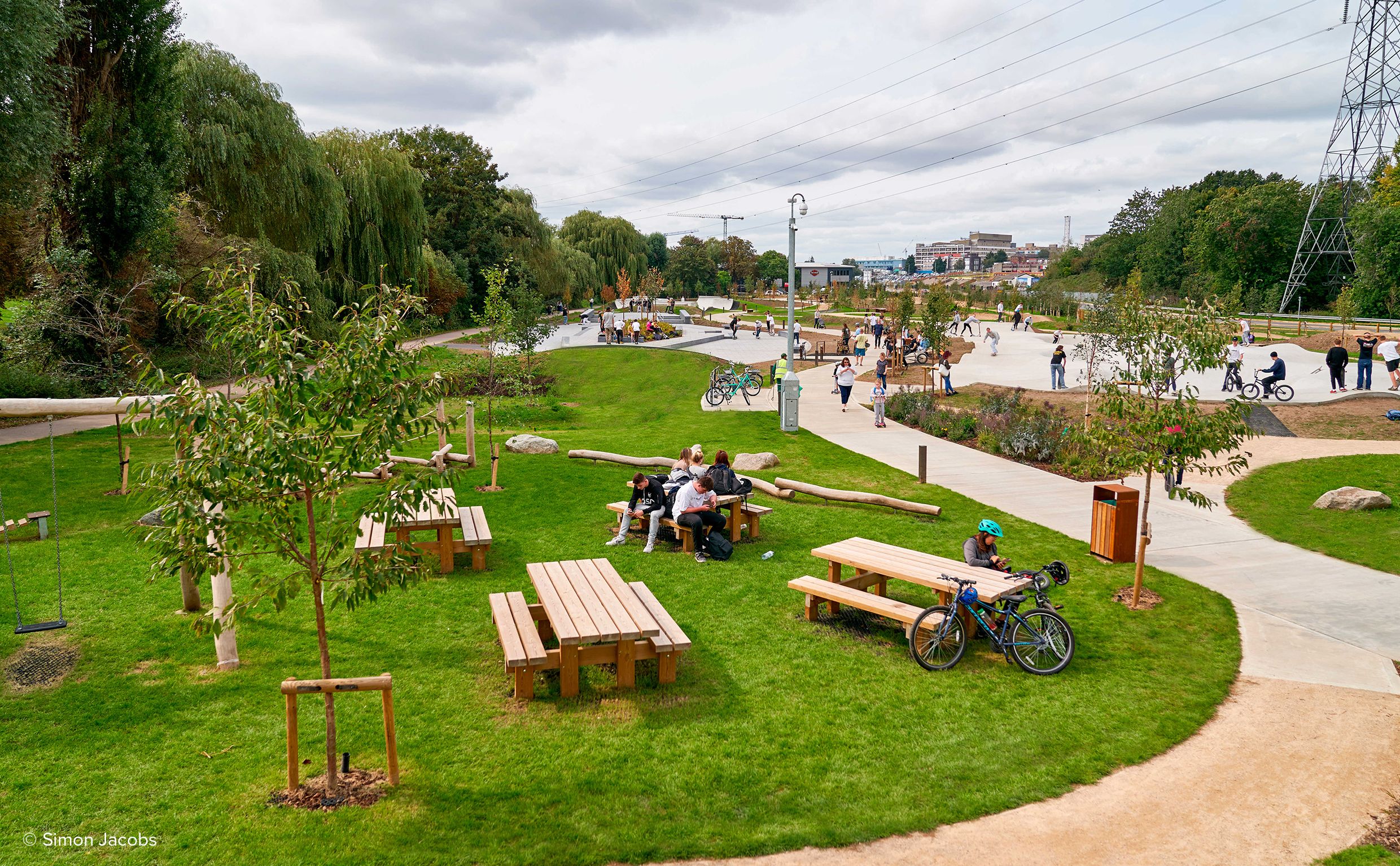 Southern Green was commissioned by Watford Borough Council to develop proposals from concept to implementation for this exciting adventurous play area. The playscape aims to push the boundaries of risk and inclusive play design. The smaller flagship play unit incorporates an accessible ramp and deck, enabling endless opportunities for less able and fully able children to challenge themselves as they play alongside each other. An accessible winding path runs adjacent to a variety of accessible play features, purposefully positioned throughout the play space to encourage to children of all abilities to interact. The large multi play unit provides exciting opportunities for play progression and also gives a great aerial perspective of entire site. The core play space environments are flanked by naturalistic planting, which is intended to create stimulating opportunities for informal and imaginative play. From the outset, Southern Green worked alongside Jupiter Play to transform sketch designs for bespoke equipment into reality.
