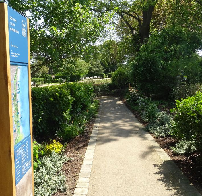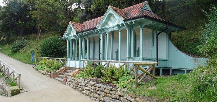 South Cliff Gardens is a 16ha cliff side public gardens with over 250 years of architectural and designed landscape development, including works by George Knowles, Joseph Paxton, and Scarborough Borough Engineer Harry Smith.