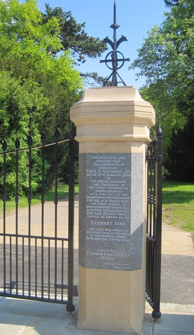 Stewart Park was formerly the grounds of Marton Hall, a Victorian mansion built by Middlesbrough industrialist Henry Bolckow. The park also contains the birthplace of Captain James Cook. The land was bequeathed to the people of the town by Thomas Dormand Stewart in 1928 and, although Marton Hall burnt down in 1960, a loggia and garden temple survived, along with a boating lake, a magnificent stable block complex, large areas of mature woodland and a dramatic expanse of parkland.