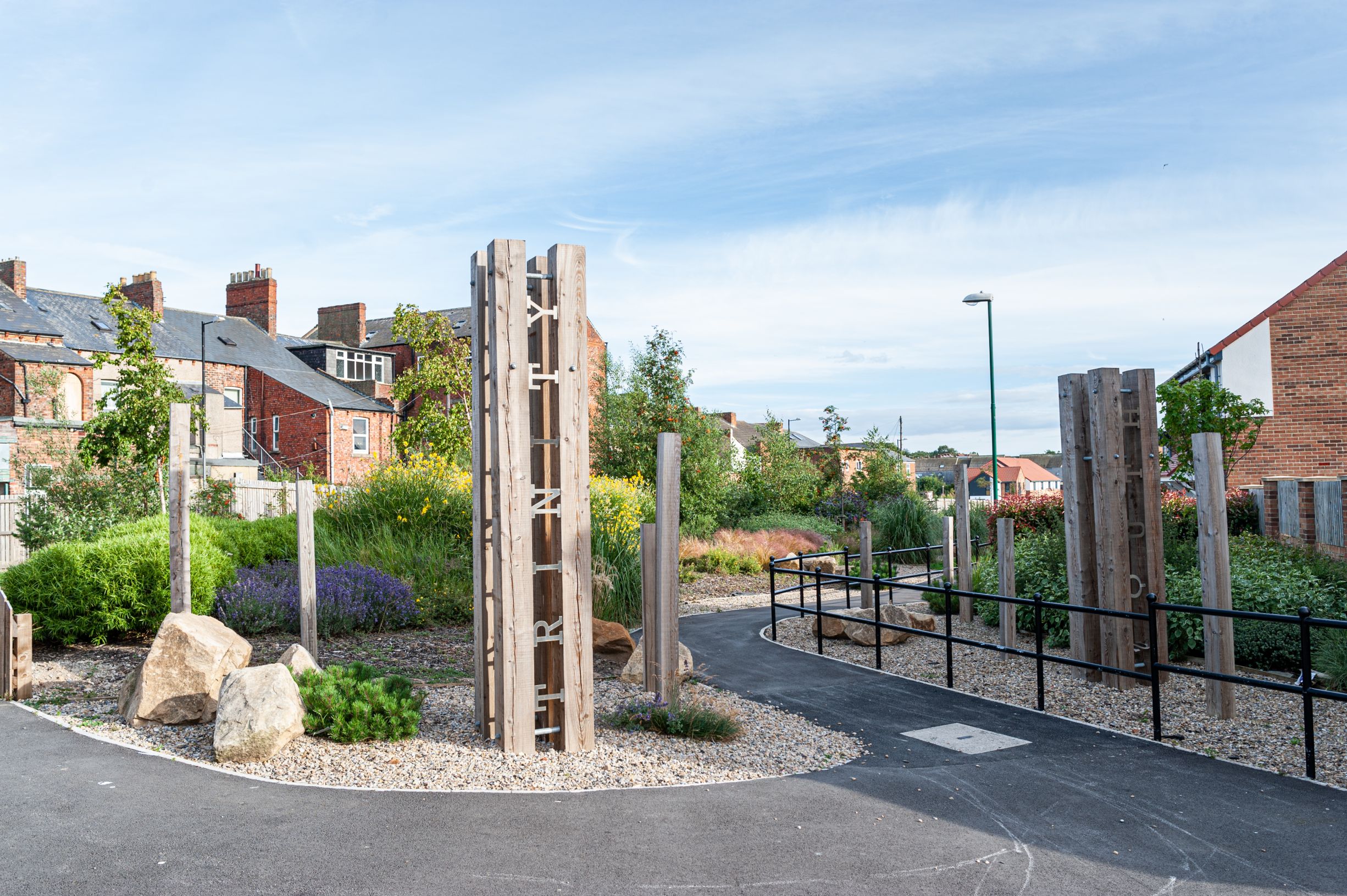 Southern Green was appointed to design the play areas, landscape gateway features and the detailed hard and soft landscaping around the site. The scheme includes a linear park which runs through the site providing a safe space for formal and informal play and community integration. The network of pedestrian priority spaces within the masterplan connect existing amenities and Frederick Street shopping area, as well as the One Trinity Green and Sinclair Meadows development.